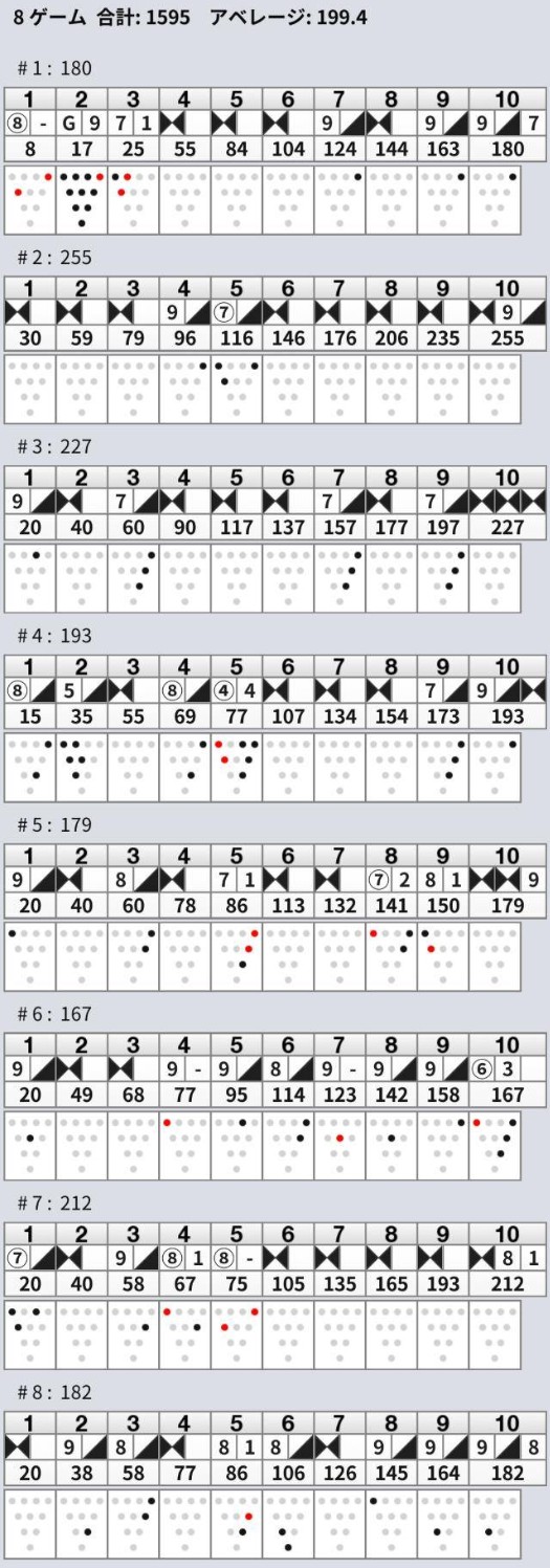 4ゲームを終えてみると、イージーミスは10ピンミスが1回のみ。スプリットは3回ありましたが、それを差し引いても内容としては十分に満足できる投球で、結果は総合3位入賞となりました。