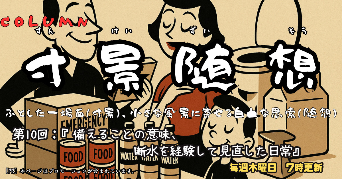 先日、自宅マンションで水が出なくなった。原因は落雷による設備の故障だった。水道の蛇口をひねっても一滴も出ないという経験は、これまでの暮らしでは想像もしていなかった不便さを突きつけてきた。