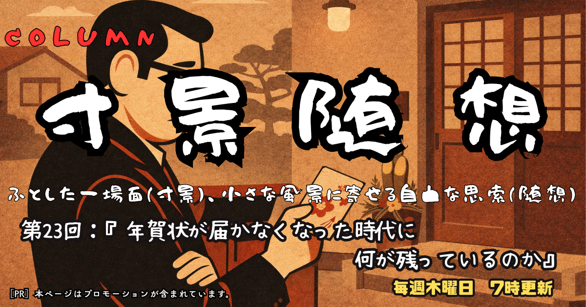 子どものころ、年末というのは少し特別な季節だった。クラスの女の子に堂々と住所を聞ける、数少ない正当な口実が「年賀状出したいから、住所を教えてくれない?」という一言だった。元旦の朝には「ポストを見るのは僕がやる」と名乗り出て、胸を高鳴らせながら郵便受けを開けた記憶がある。そこに何通の年賀状が入っているかで、その一年の始まりの気分が決まった。