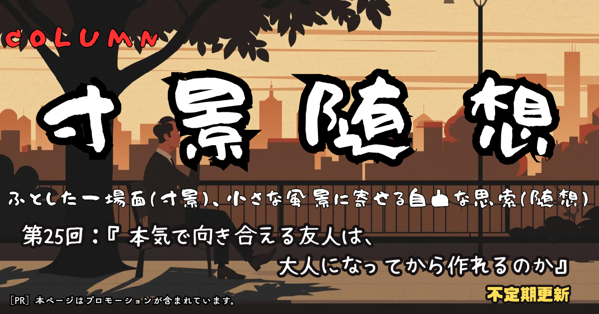 この歳になってからでも、何でも話せる真の友人を、もう一人くらい作れたらいい。そんな願いを、静かに胸に抱く今日このごろである。