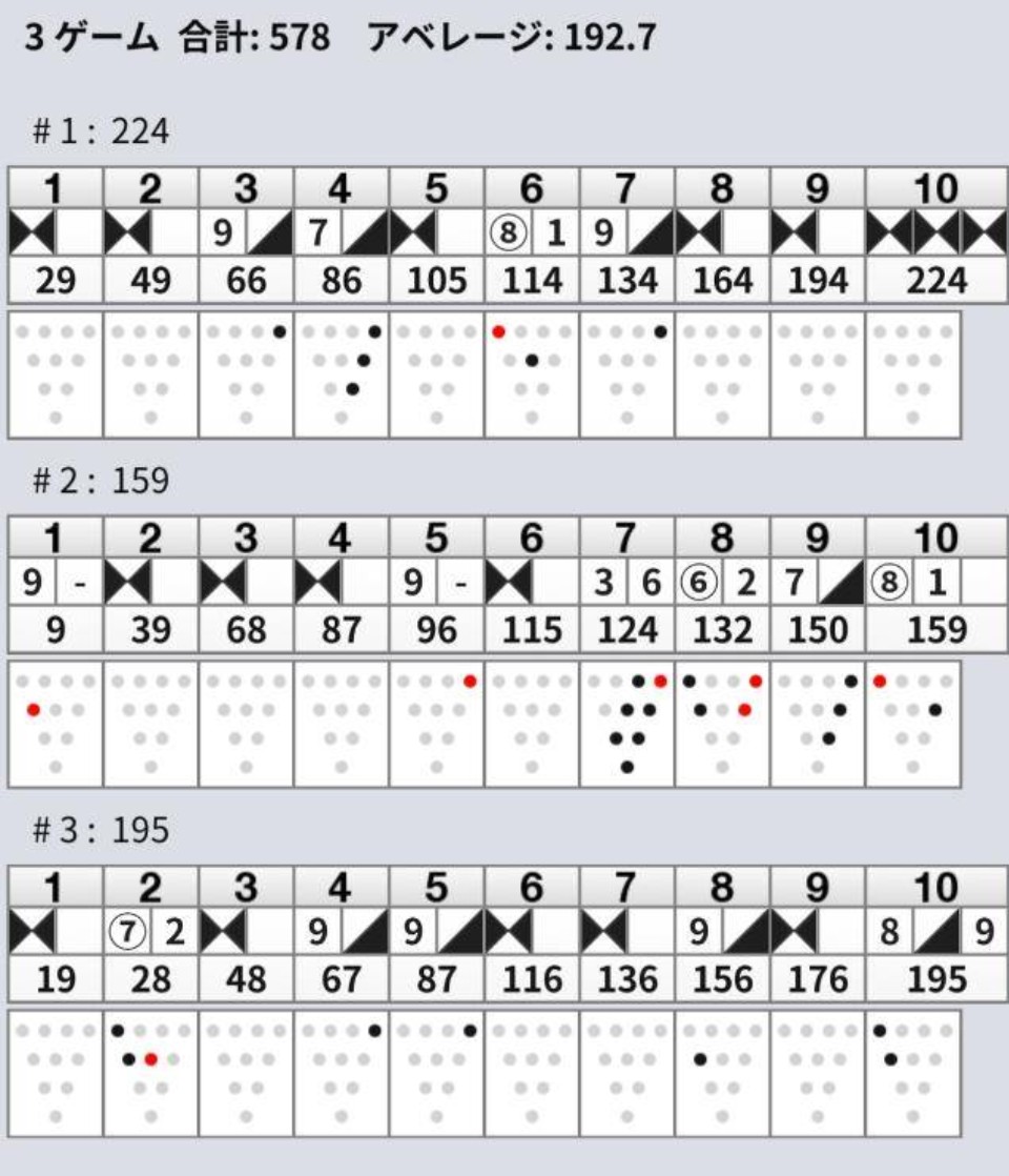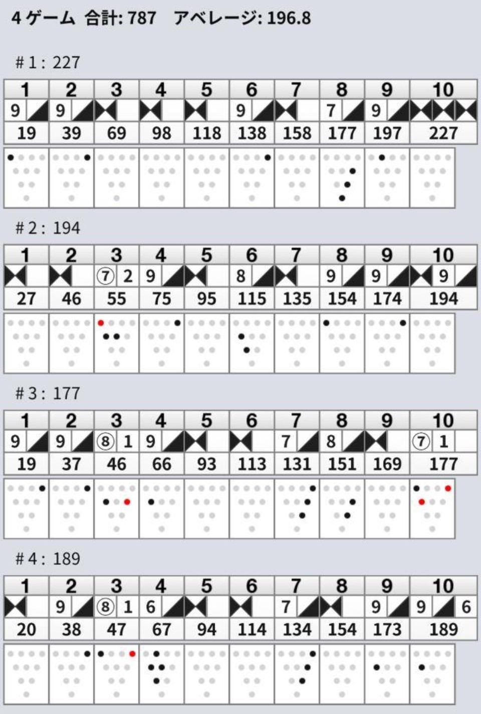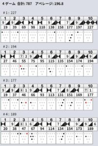 今月からレーンコンディションが変更されているのですが、どうも持ち込んだボールがしっくりこず、思うようにスコアが伸びません。それでも4ゲームの中でイージーミスが無かったのが唯一の救いでした。こういう時はスコア以上に内容を評価したいところです。