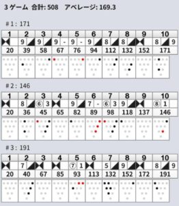 内容はOボウルとほぼ同じ…。ストライクが続かず、またもやスプリットに足を引っ張られる展開。
