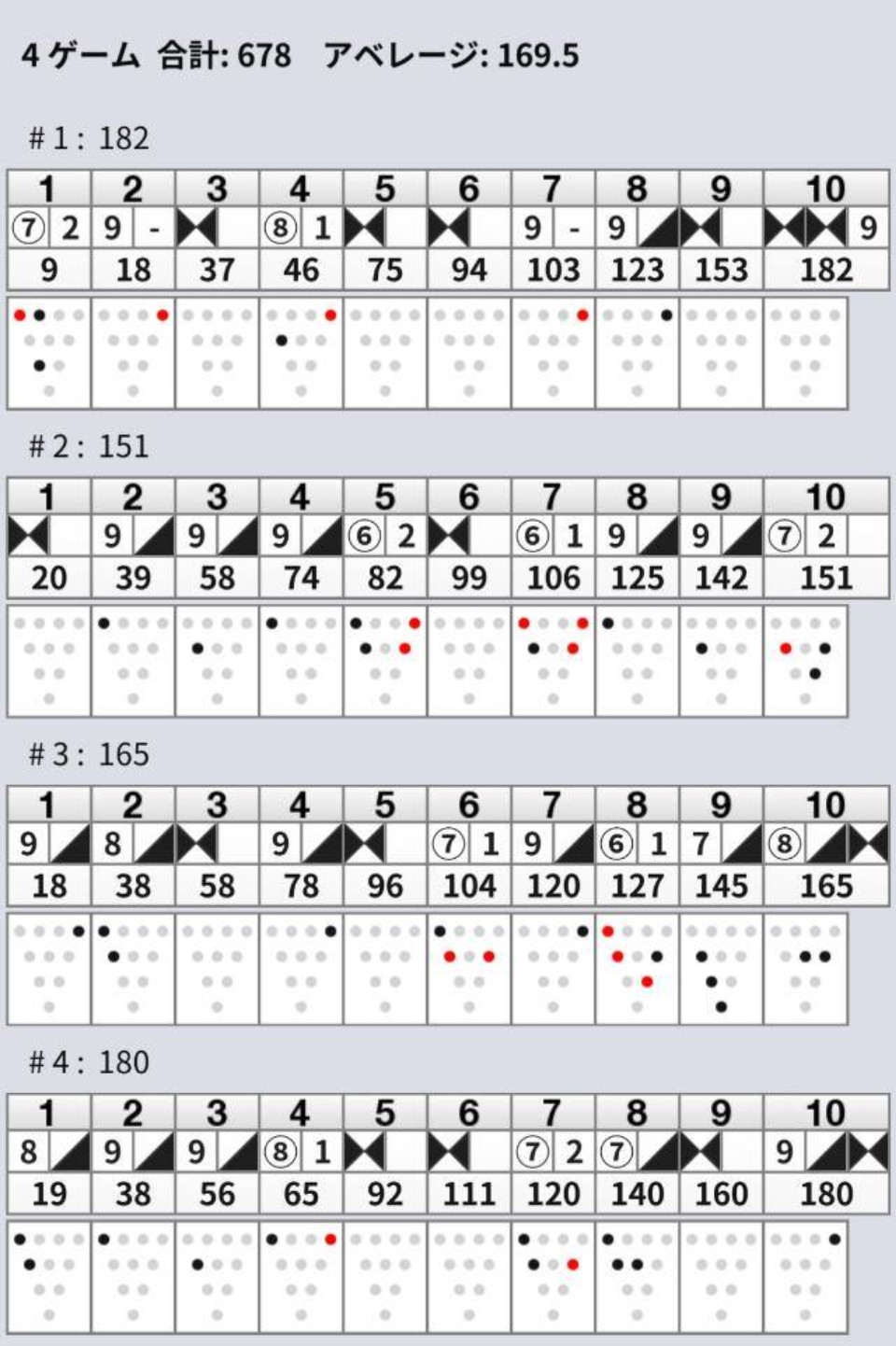 今月のレーンコンディションは相変わらず 「ストライクが出にくい・スプリットが出やすい」 厳しい状態。10ピンはきっちりカバーできたものの、要所要所でスプリットに泣かされてスコアは伸びず。「なんでここで割れるんだよ!」と心の中でツッコミを入れるばかりの夜でした。